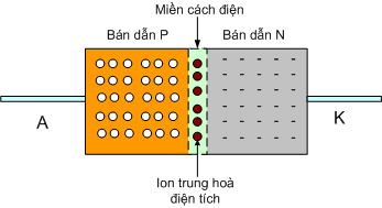 Khối bán dẫn P chứa nhiều lỗ trống tự do mang điện tích dương nên khi ghép với khối bán dẫn N thì các lỗ trống này có xu hướng chuyễn động khuếch tán sang khối N. Cùng lúc khối P lại nhận thêm các điện tử (điện tích âm) từ khối N chuyển sang. Kết quả là khối P tích điện âm (thiếu hụt lỗ trống và dư thừa điện tử) trong khi khối N tích điện dương (thiếu hụt điện tử và dư thừa lỗ trống).